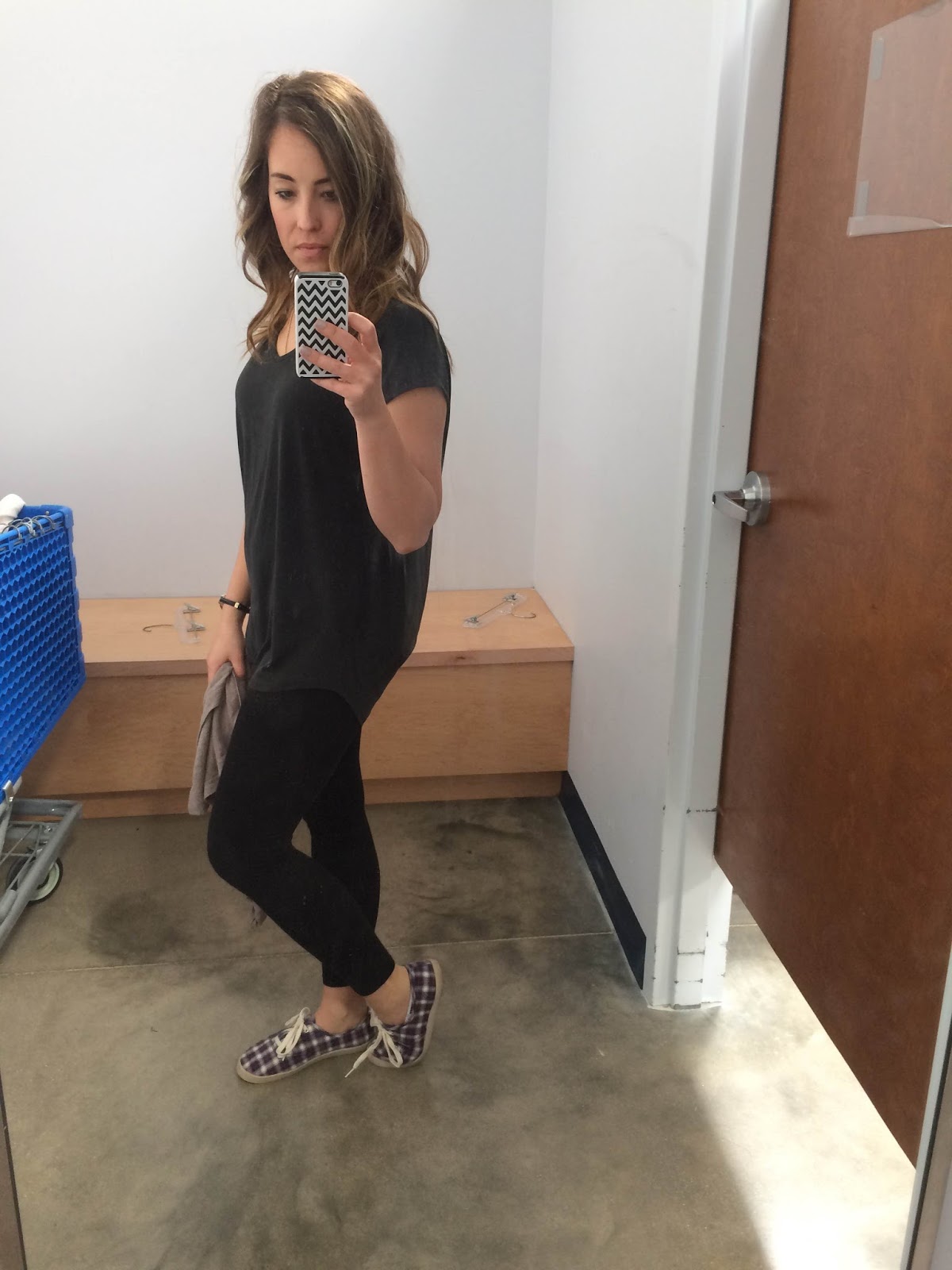 What'd I tell ya? That was SO EASY!! :) Think of all of the possible boot socks you could make...And now, just because I'm all about keepin' it real. How perfect is this fitted sweatshirt that I found for $2 at Goodwill the other day because it was a yellow tag (sale color)?! In this picture I'm wearing it overtop of the long black tank I found and my leggings, so I'm like super casual and super comfy!